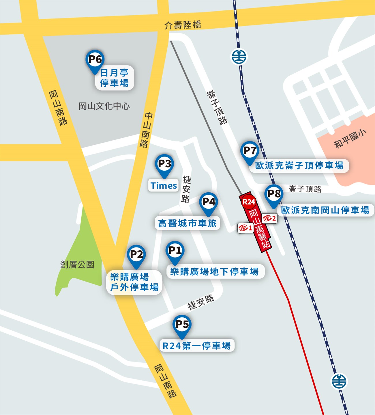 高雄捷運 R24 岡山高醫站周遭停車場一覽表