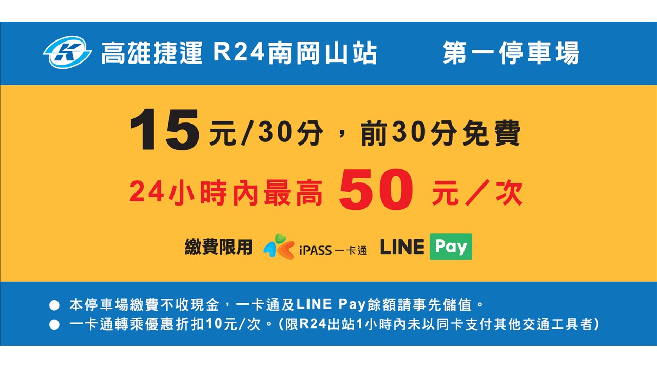 位於岡山區岡山南路 (台一省道)旁之R24南岡山站第一停車場,汽車停車場即將於109年2月20日開始收費,停車位數共計207席(含身心障礙車位5席,母嬰親善車位5席)