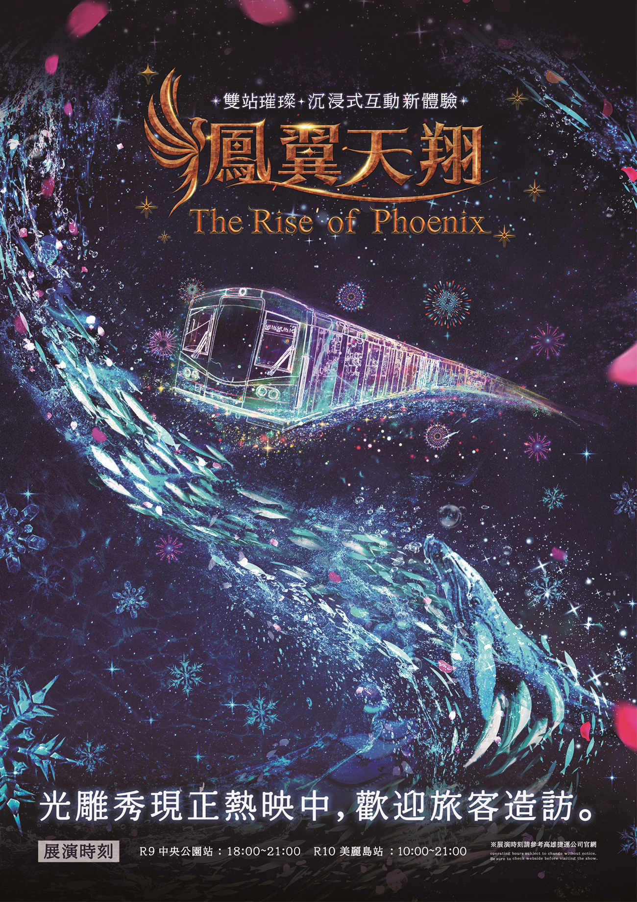 ★★★★★中央公園站鳳翼天翔光雕秀-SKY‧天之篇暫停展演公告★★★★★設備維護更新,暫停展演,造成不便,敬請見諒。