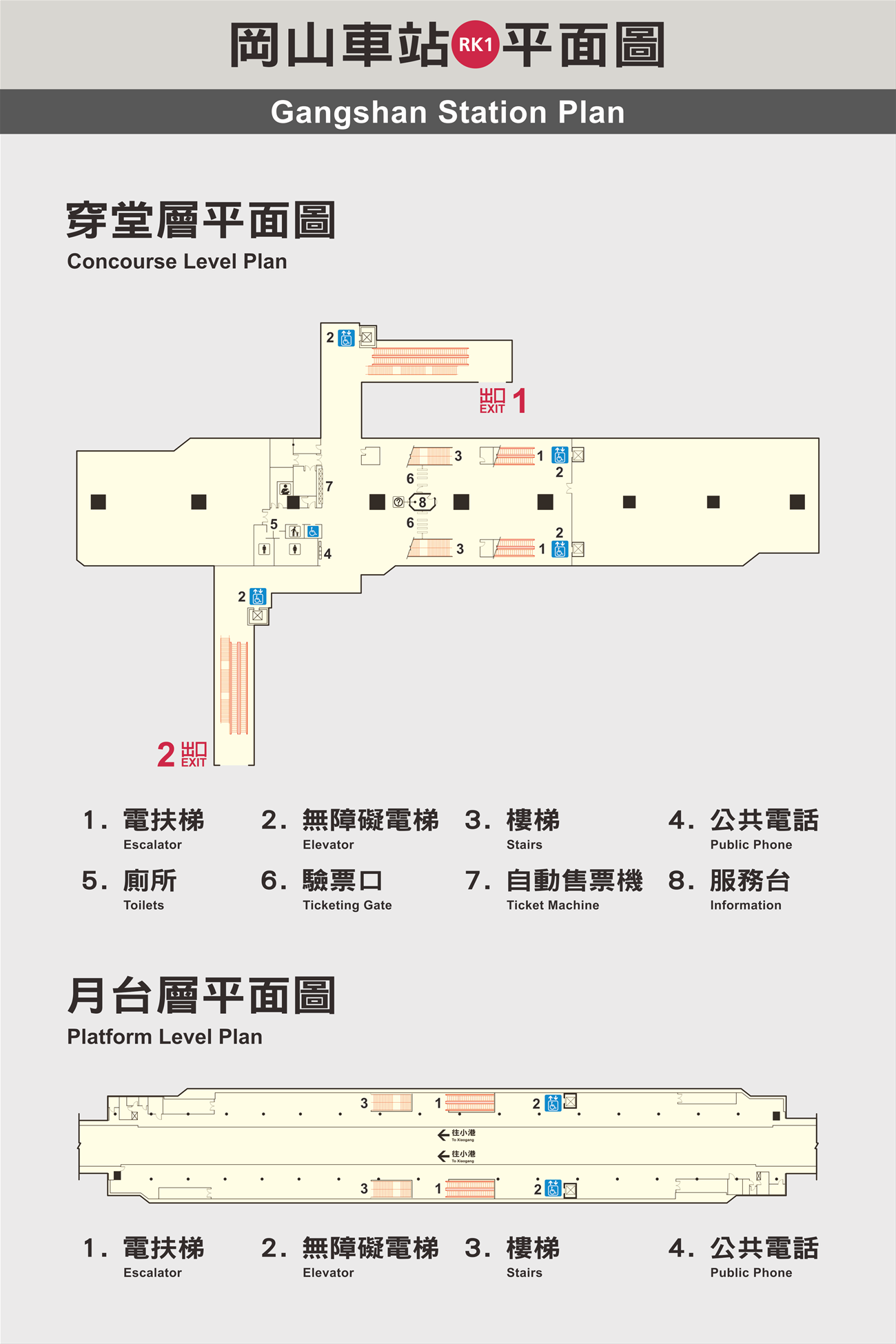 ●EXIT 2:Stairs、Escalator、Accessible Elavator、Toilet (including Accessible Toilet)。